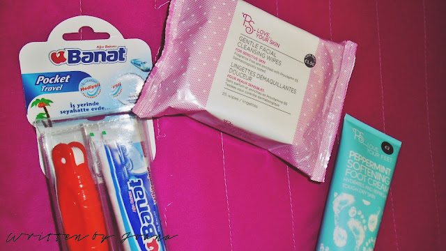- Um pack de toalhitas desmaquilhantes já para levar de férias. Apesar de cá usar água micelar, não gosto de ir de férias carregada! O pack custou 1,50€ e trás no total 50 toalhitas.